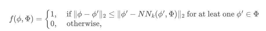 ($\text{NND}_{k}(X_{i})$는 k번째로 가까운 이웃의 거리(kth-nearest neighbour), $B(x,r)$은 점 x에 r 반경 이내에 존재하는 지점)