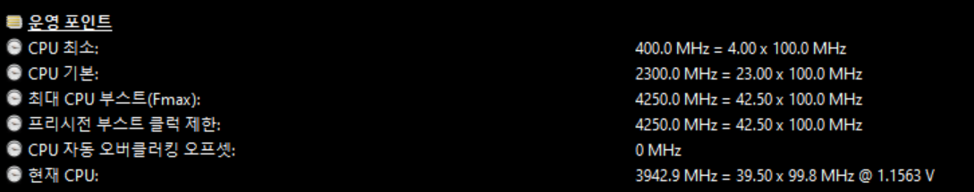 마지막으로 찾은 방법은 클럭 제한이다. 이 방법은 운영체제의 숨겨진 전원 설정인 '프로세서 주파수 제한'을 레지스트리를 수정하여 드러나게 한뒤, 최대 클럭을 제한하는 방법이다. 이 방법은 설정이 매우 간단하고, 운영체제의 옵션이기 때문에 별도로 설치할 프로그램이 없어 매우 편했다. 그래서 나는 이 방법을 사용하여 사용하는 전력을 제한하고 쓰로틀링을 막으려고 시도했다.