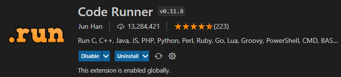 왼쪽 메뉴바에서 Extensions 버튼을 누르고 Code Runner 라는 Extension을 검색하여 설치해주면 된다.